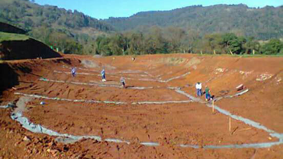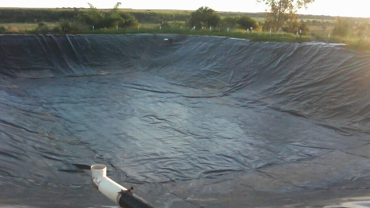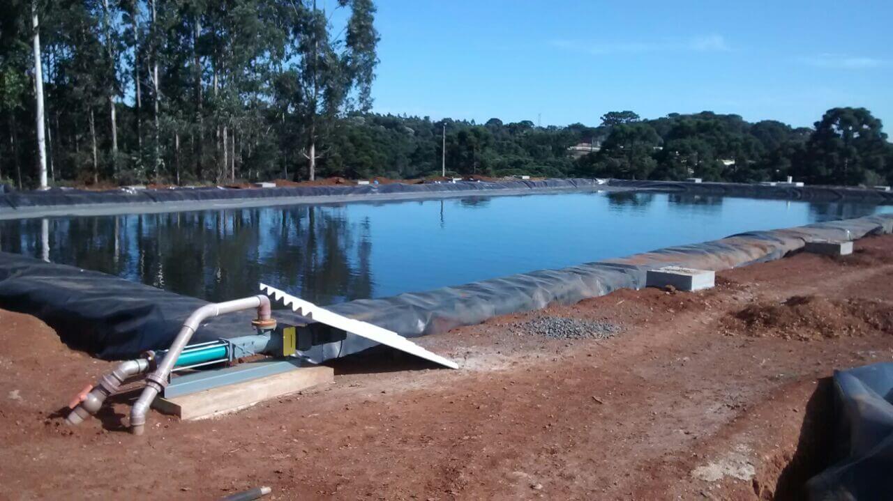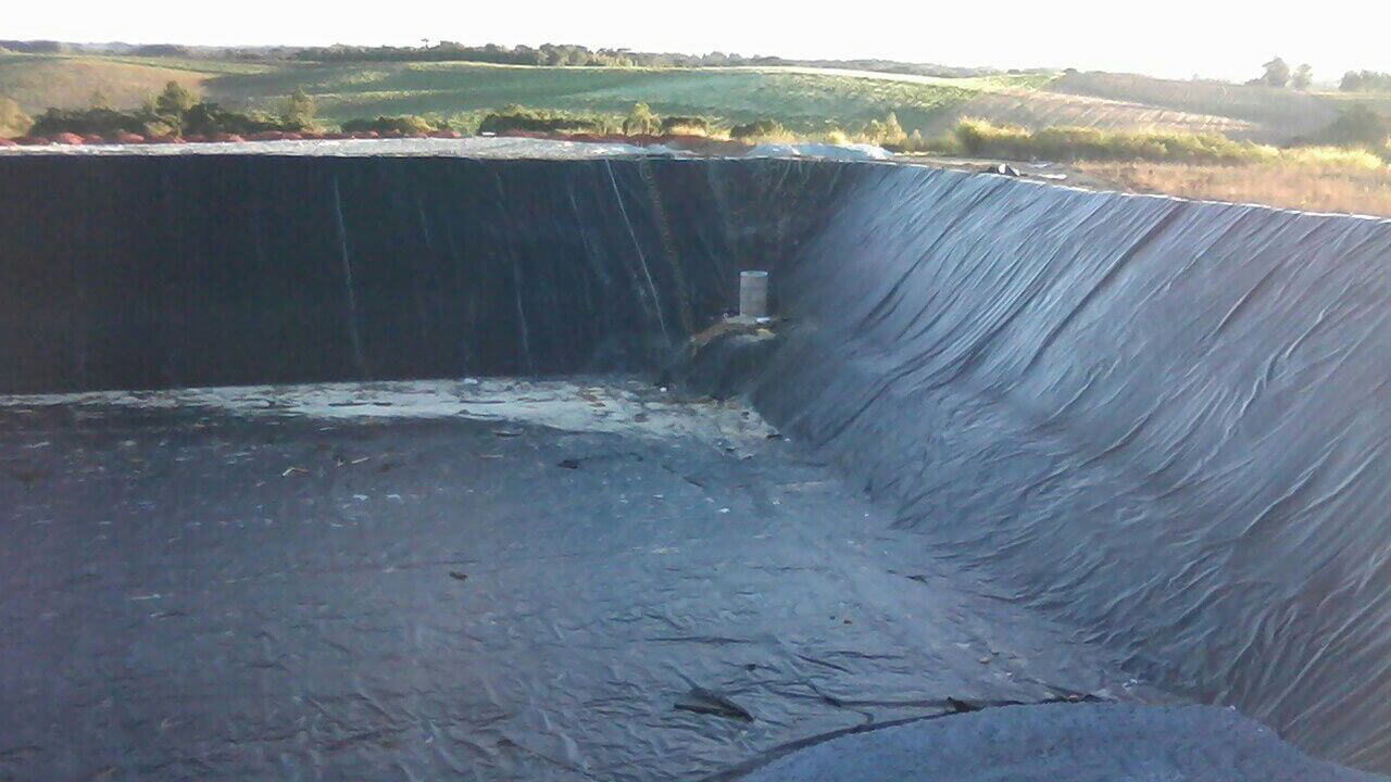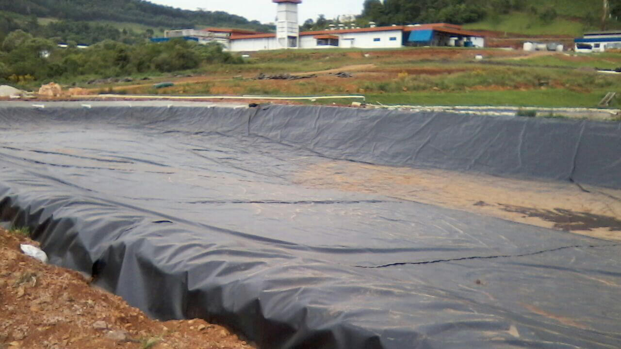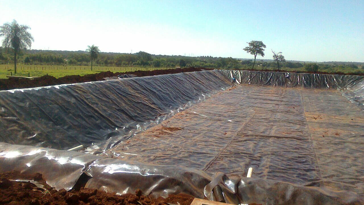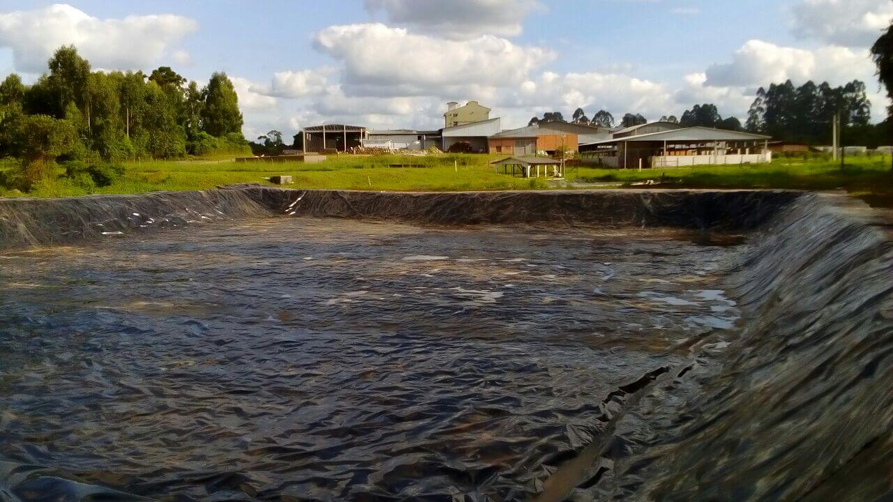 Na construção da lagoa de efluentes é usado Geomembrana de PEAD. Assim como é realizado todo o sistema de drenagem, e tubos de entrada e saída.